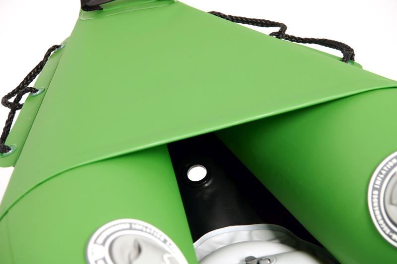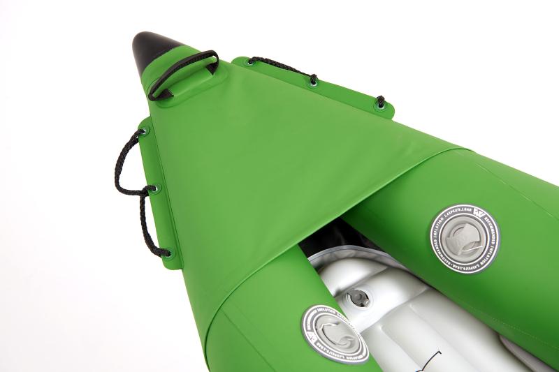 Predná a zadná časť kajaku sú vybavené ochrannou vrstvou V-cone Protection, ktorá zabraňuje poškodeniu materiálu pri kontakte s prekážkami vo vode. Vďaka Splash Guard na prídi je navyše minimalizovaný vstup striekajúcej vody do kajaku, čo zvyšuje komfort počas plavby.
