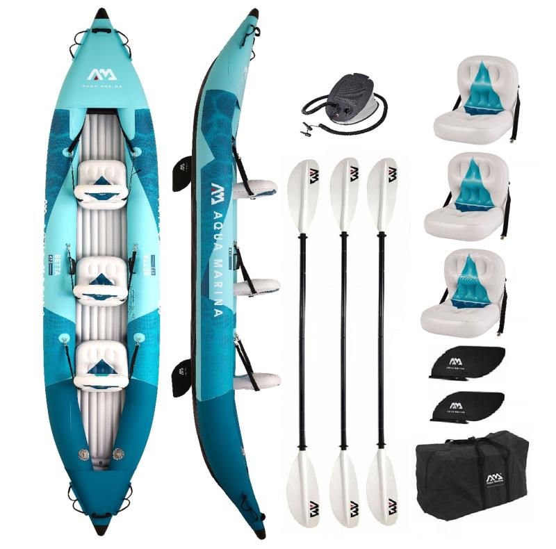 Súčasťou balenia je nafukovací kajak, jedna nastaviteľná PVC sedačka s opierkou, jedno kajakové pádlo, dve smerové plutvy, nožná pumpa a transportná taška, ktorá uľahčuje prenášanie a skladovanie.