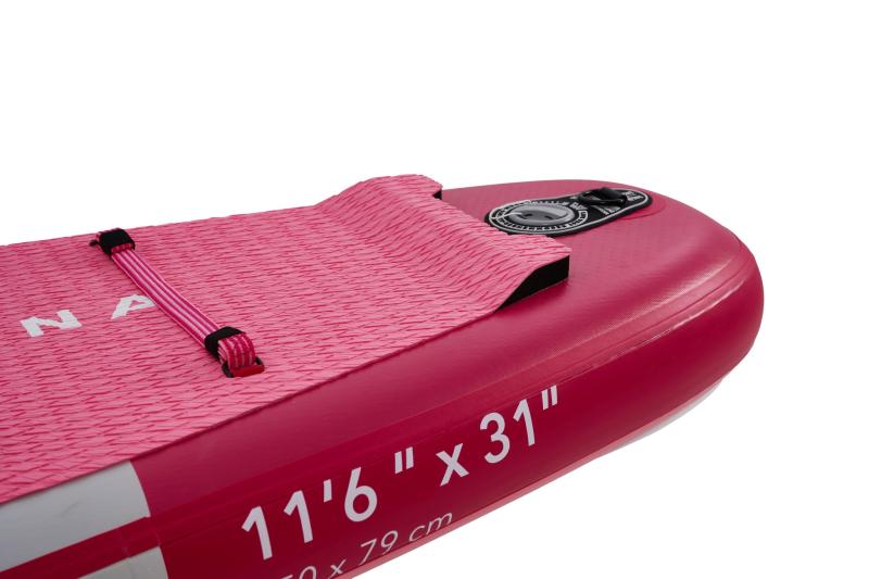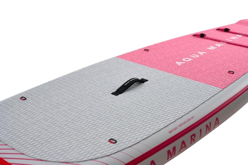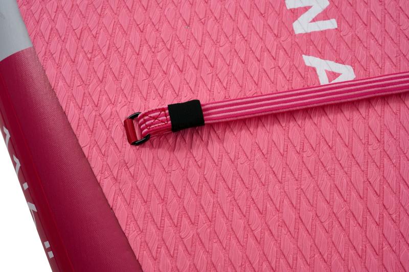 Na palube paddleboardu nájdeme nový systém uchytenia nákladu. Je vytvorený z plochých gumičiek RED STRAP™ poskladaných v novom tvare na väčšej ploche, čo nielen skvele vyzerá, ale je zároveň veľmi funkčné. Frézovaný nešmykľavý pad s DIAMOND vzorom, ktorý má uzavretú štruktúru, aby neprijímal nečistoty. V zadnej časti padu je zvýšený okraj Kick-pad pre oporu zadnej nohy pri otočkách.