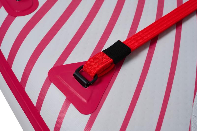 Pre jednoduchšie prenášanie nafúknutého plováku môžete využiť ramenný popruh, ktorý je možné k paddleboardu pripnúť k D-ringom umiestneným na okraji padu. D-ringy na palube paddleboardu je možné využiť aj pre pripojenie kajakovej sedačky, ktorá však nie je súčasťou balenia.