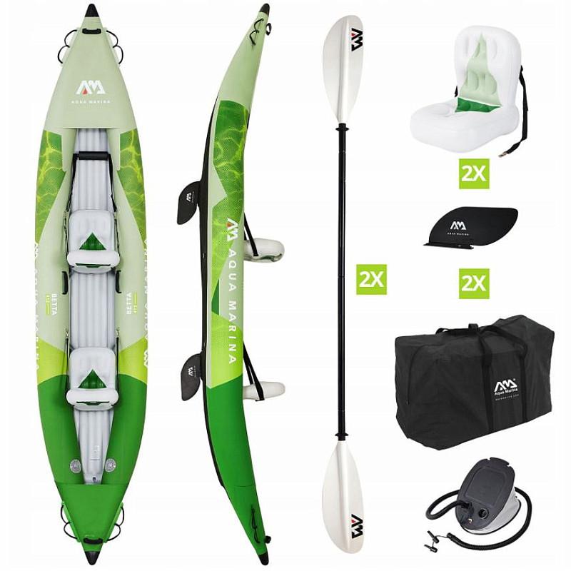 Užívejte si přírodu ve dvou v tomto skvělém nafukovacím inovovaném kajaku značky Aqua Marina modelu 2022 s větší nosností.Aqua Marina představuje inovovaný nafukovací kajak BETTA na vodu. Kajak 412 je stále velmi skladná loď vhodná pro 2 osoby. Nafukovací loď je navržena pro zvýšenou odolnost. Jeho předností je zejména snadná instalace, skladování i používání. Nafukovací kajak na vodu je vhodný zejména na velká jezera a klidnější toky. Díky jeho nízké váze oceníte jeho snadnou ovladatelnost. Díky jeho vlastnostem je vhodná zejména pro začínající a pokročilejší kajakáře.