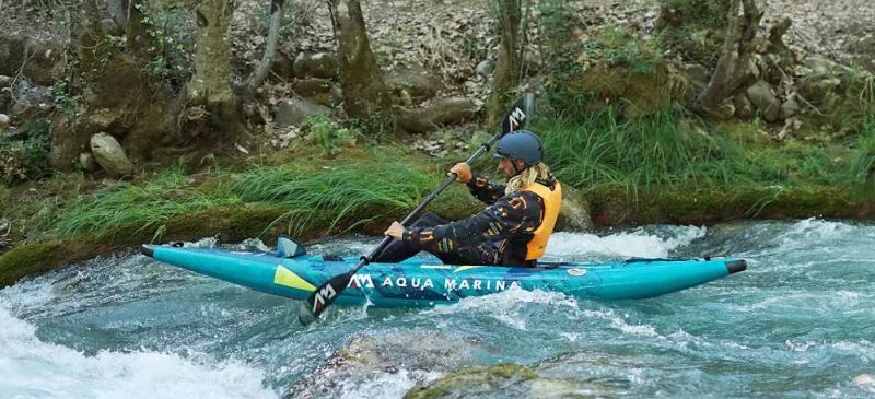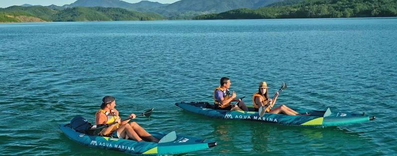 Dvoumístný kajak Aqua Marina STEAM 412 je díky své pevné DWF podlaze vybavené "drop-stitch" technologií velmi pevný, což lze vidět na jeho jízdních vlastnostech. Té napomáhají i odtokové kanálky, kterými může nastříkaná voda volně vytéct ven. Nemusíte se tedy vůbec obávat špatné ovladatelnosti z důvodu vody v kajaku. Pohodlná nafukovací nastavitelná sedátka oceníte zejména při delších výletech.