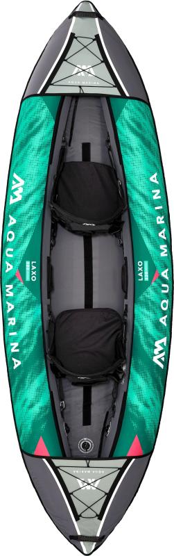 Nafukovací dvoumístný kajak AQUA MARINA Laxo. V balení člun, 2x pádlo, 2x sedačka, taška, 2x ploutev, pumpa nožní.Vysoce odolný a pohodlný nafukovací kajak pro dvě osoby, který skvěle poslouží začínajícím i mírně pokročilým jezdcům. Jedná se o nízkotlaký kajak o třech komorách (2+1) - dva boční válce a nafukovací podlážka. Tento kajak nejlépe využijete na klidných a mírně tekoucích vodách. Díky svému širšímu tvaru a pohodlnému posedu se jedná o velmi stabilní kajak, který nabídne maximální pohodlí při vaší plavbě.