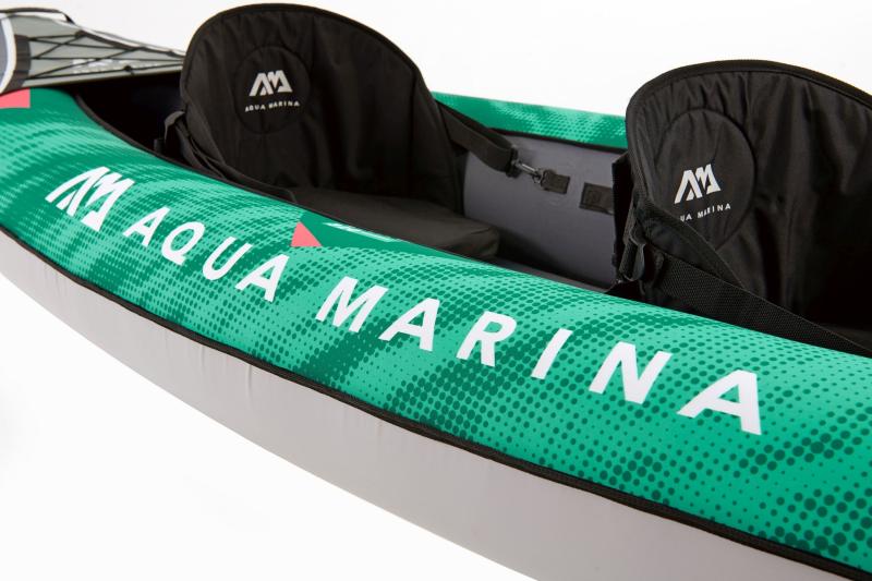 Nafukovací dvoumístný kajak AQUA MARINA Laxo. V balení člun, 2x pádlo, 2x sedačka, taška, 2x ploutev, pumpa nožní. Zobrazit celý popis
