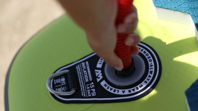 Väčšia dvojčinná vysokotlaková pumpa AQUA MARINA určená na nafukovanie paddleboardu. Pumpa obsahuje manometer pre jednoduché sledovanie dosiahnutého tlaku. Dosiahnuteľný tlak až 20 PSI, prepínač "double/single action" (pri dofukovaní na požadovaný tlak prepnete na "single action" pre jednoduchšiu obsluhu). Funkcia "double action" znamená, že pumpa tlačí tlak ako pri ťahu smerom nahor, tak aj pri stlačení dole. Táto funkcia je vhodná na nafúknutie veľkého objemu vzduchu.