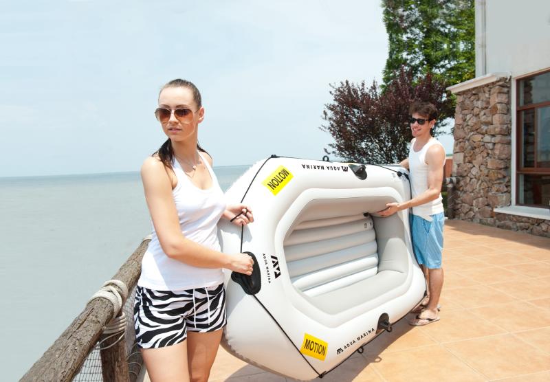 AQUA MARINA Motion je lehký člun z odolného PVC, který se hodí jako rekreační plovák na klidnou hladinu. Člun má tři vzduchové komory a pohodlně uveze dva dospělé nebo tři lehčí pasažéry. Součástí balení je také motor elektrický motor Aqua Marina T-18. 12V baterie není součástí balení. K pravidelnému provozu doporučujeme baterii trakční, pro občasný provoz lze využít i klasickou autobaterii. Kapacitu baterie volíme dle nároků na dojezdovou vzdálenost. Zobrazit celý popis