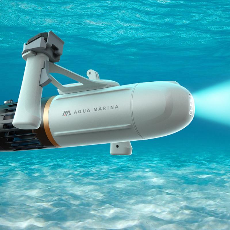 Osobní podvodní skútr s integrovaným reflektorem nebo přídavný motor k paddleboardům a nafukovacím lodím? Obojí! Aqua Marina BLUEDRIVE X skutečně splňuje oboje.Tento multifunkční společník na cesty je výkonný podvodní skútr pro milovníky šnorchlování potápění i freedivingu. Zároveň jej však můžete použít jako motor na paddleboard či kajak.