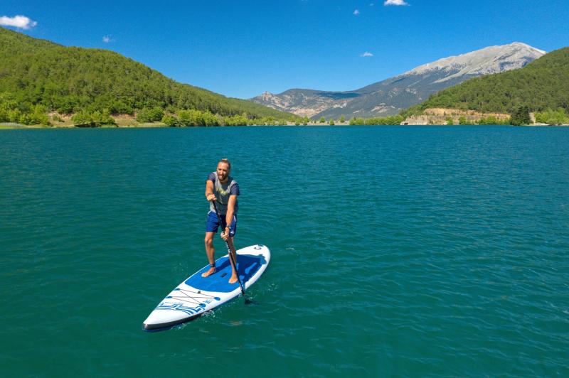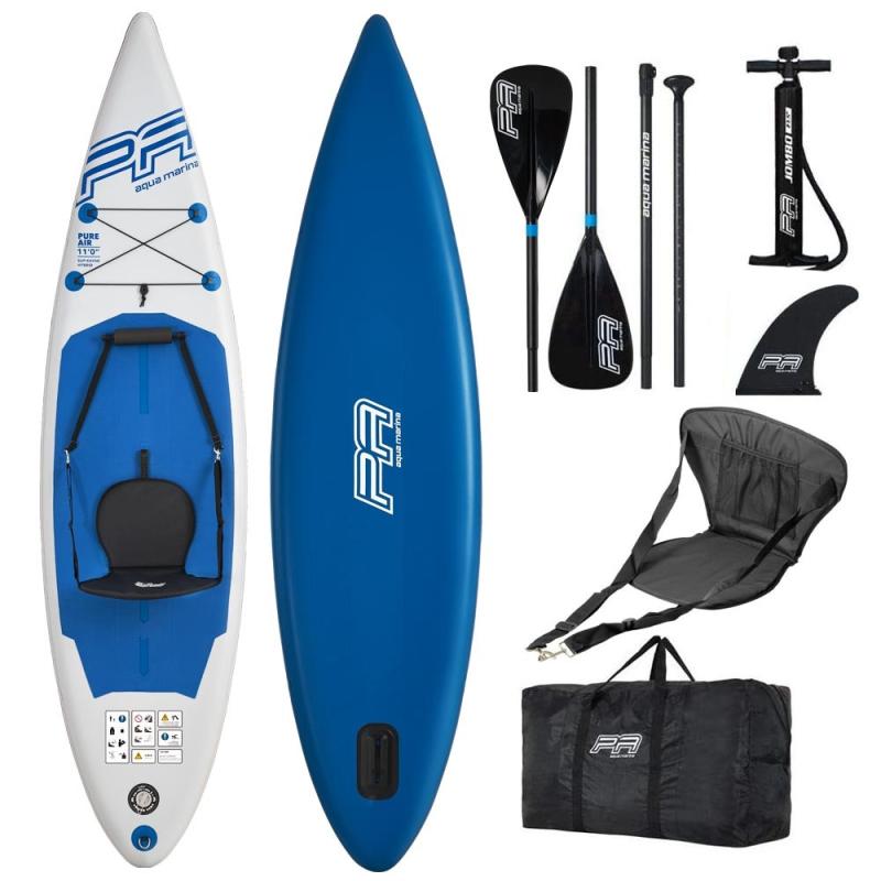 Ide o veľmi univerzálny paddleboard pre rekreačné využitie s kajakovou sedačkou aj športovejšie pádlovanie. Paddleboard AQUA MARINA PURE AIR je vyrobený z ľahkej konštrukcie Drop Stitch Light, ktorá spolu so stredovým madlom zabezpečí jednoduchú manipuláciu na brehu. Vďaka pružnému lanu na prídi je možné na paddleboard naložiť drobný náklad a vyraziť v ústrety dobrodružstvu!