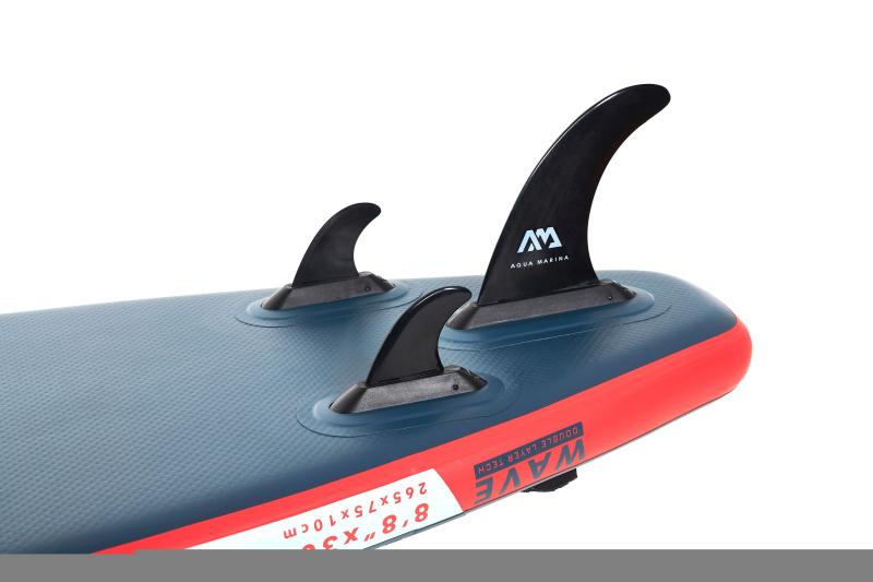 Kratší délka, menší tloušťka, užší tail a surfové flosny mu dodávají rychlou odezvu, snadnou manévrovatelnost a potřebnou hbitost v zatáčkách. Mimo vlny se dá paddleboard využít také jako klasický allroundový paddleboard pro lehčí jezdce nebo děti. Paddleboard je vyroben Drop-Stitch Double Layer technologií. Jedná se odolnou a rubustní technologii, která zajistí vysokou tuhost a delší životnost paddleboardu. Nově je Wave vybaven třemi odnímatelnými flosnami ve zbrusu novém systému "Press&Click", díky kterému bez nářadí flosny snadno zacvaknete do integrovaných kastlíků. Paddleboard i s veškerým příslušenstvím zabalíte do transportního batohu, který pohodlně unesete na zádech. Paddleboardy AQUA MARINA mají vnitřní houbovitou strukturu, která po nafouknutí na tlak 15-18 PSI perfektně drží tvar a je velmi tuhá. Doporučený tlak výrobcem je 15 PSI, maximum pak 18 PSI.