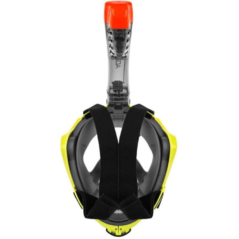 Pevná polykarbonátová maska má dvojité silikónové tesnenie a vďaka svojej konštrukcii ponúka široké zorné pole 180°. K dokonalému usadeniu slúžia dva dĺžkovo nastaviteľné elastické pásky. Šnorchel je možné ľahko zložiť, čo umožňuje jednoduchšiu prepravu aj uskladnenie. Súčasťou masky je aj držiak pre kameru (kamera nie je súčasťou balenia).