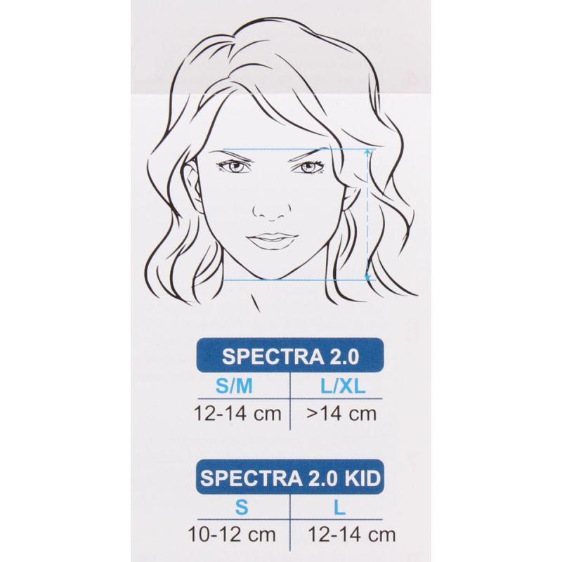 Konstrukce masky Spectra 2.0 KID je ale vhodná i pro ty potápěče, kteří považují tradiční potápěčské brýle a šnorchl za nepohodlné nebo je dokonce vůbec nemohou používat. Masku Spectra tvoří plastová konstrukce, jejíž součástí je těsnění z vysoce kvalitního antialergenního silikonového kaučuku (LSR). Tvar masky a vlastnosti umožňují pohodlné přizpůsobení mnoha velikostem i tvarům obličeje. K přesnému usazení a utěsnění slouží dva široké, délkově nastavitelné gumové pásky. Součástí masky je i pět ventilů. Dva boční ventily v úrovni očí napomáhají k proudění vzduchu, dva ventily v úrovni nosu slouží pro minimalizaci zamlžování visoru a ventil uložený v nejnižším bodě masky je pak určený k vydechování. Ten slouží i k odvodu vody v případě, že se uvnitř masky z nějakého důvodu voda přeci jen ocitne. Tady stačí pouze zvednout hlavu nad hladinu nebo přímo ve vodě energicky vydechnout a nežádoucí voda odteče. Nezkreslený výhled zajišťuje konstrukce s minimálním vnitřním objemem a proti slunečnímu svitu mírně zabarvený visor z vysoce kvalitního odolného polykarbonátu. O přívod dostatečného množství vzduchu a následný odvod vzduchu se stará šnorchl s širokým průřezem. Ten je na svém konci vybavený systémem Ultra-Dry, který zabraňuje vniknutí vody do dýchací trubice. Šnorchl lze snadno složit, což umožňuje snazší přepravu i uskladnění. Maska Spectra 2.0 KID je balena v síťovaném stahovacím bagu.