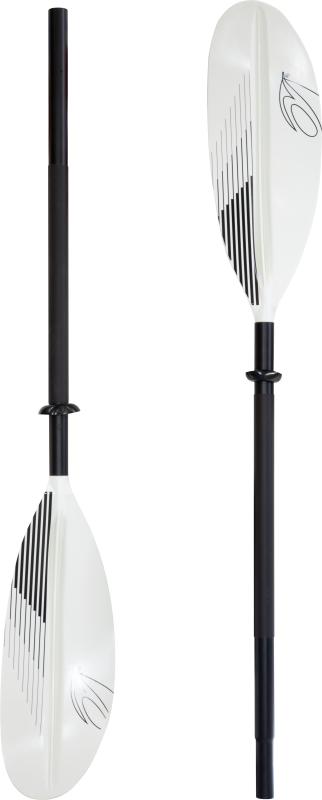 Skladacie dvojdielne pádlo s oválnym hliníkovým násadom a plastovo-laminátovými listami ponúka odolnosť a ľahkú manipuláciu pri kajakovaní. zobraziť celý popis