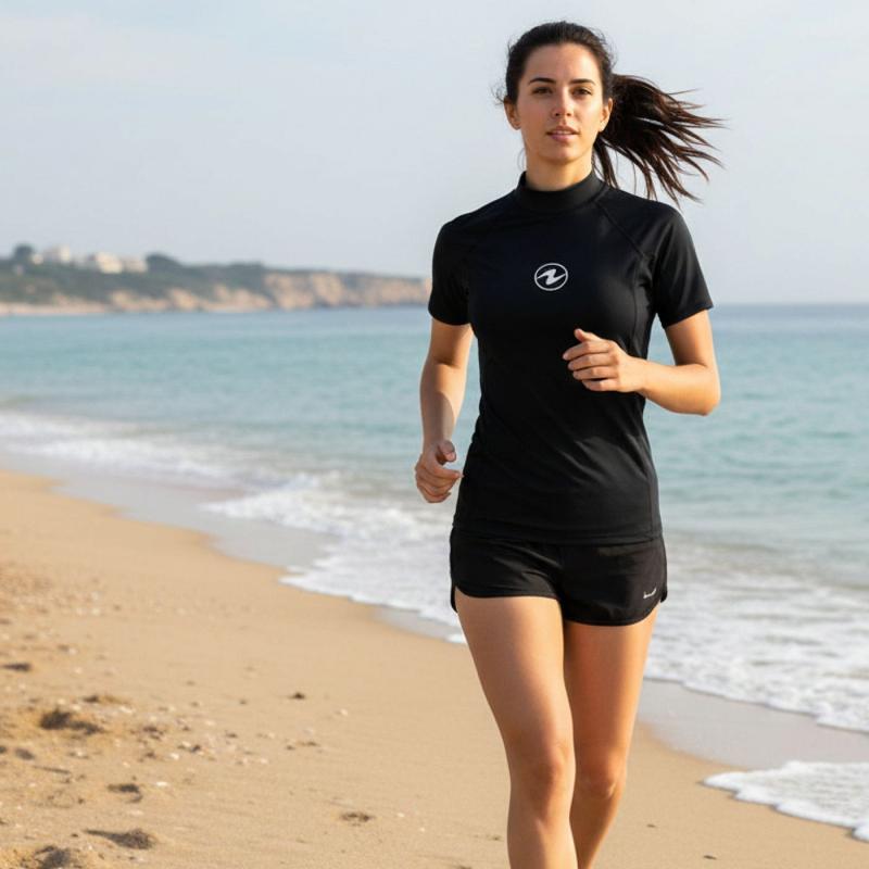 Dámske tričko z lycry je vhodné pre všetky vodné aktivity i plážové športy. Ochrání krk, chrbát a ramená pred spálením. Navyše je príjemné na telo a dýcha.