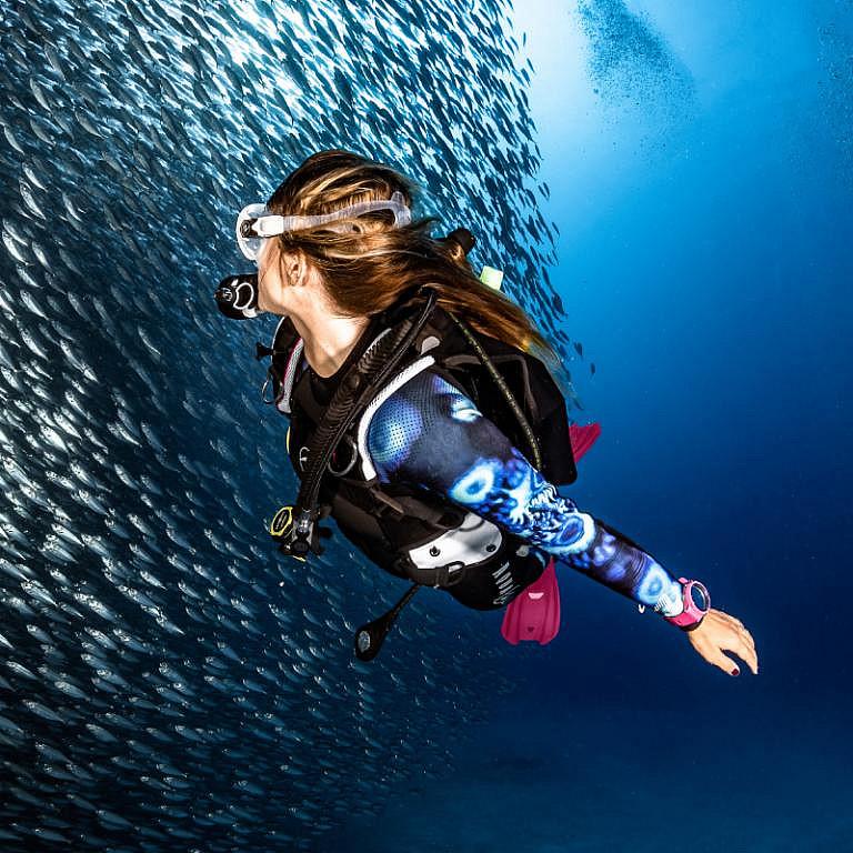 Dámská neoprenová kombinéza Hydroflex Full Suit je designovým kouskem vhodným pro potápění v teplých vodách. Dámský oblek z neoprenu využijete i na ostatní vodní sporty, jako plavání v chladnějších vodách nebo surfing či paddleboarding. Díky plochým švům a límci ve tvaru V poskytuje dokonalý komfort. Potištěné části omezují odření, oblek tak bude dlouho vypadat jako nový.Hrudní část je vyrobena z materiálu mesh skin, který poskytuje větší odolnost proti oděru a větru. Oblek je vybaven manžetami na zápěstí a kotnících, které zabraňují vniknutí vody. Nákolenky jsou vyrobeny z materiálu Supratex, který je odolný a zároveň si uchovává pružnost. Také ramenní potištění prvky jsou navrženy tak, aby chránily oblek proti odření od kompenzátoru vztlaku. Potisk na zápěstí pak podporuje držení počítače na místě. Oblékání a vysvlékání usnadňuje popruh připevněný k jezdci zipu.