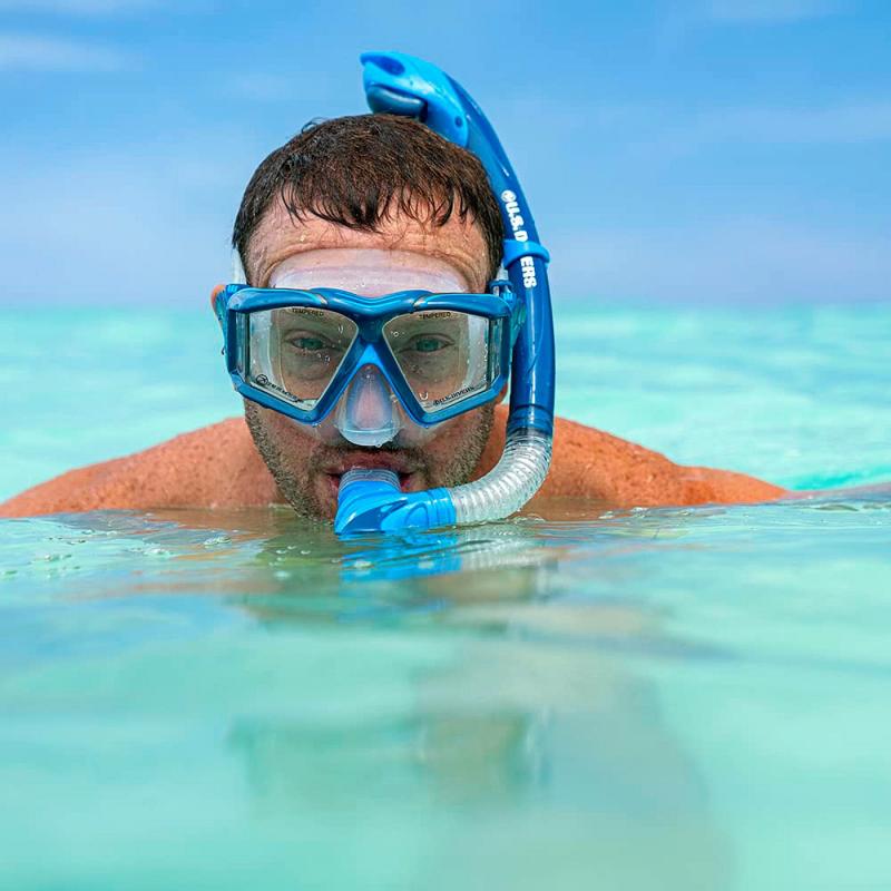 • Šnorchl s výdechovým ventilem a horním vlnolamem disponuje silikonovým náustkem eliminující únavu čelisti. Ve vlnolamu je plovák, který zabraňuje vniku vody při zanoření hlavy, díky tomu je suchý. Pro šnorchlování nejpohodlnější varianta.