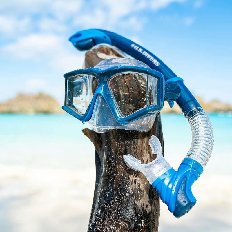 Šnorchlovací set na holou nohu, to je jedinečný set Aqua Lung U.S. DIVERS SIDEVIEW II. Za jednu cenu tak obdržíte kvalitní panoramatickou masku s bočními skly, suchým šnorchl a ploutve s gumovým páskem na patu. Páskové ploutve na šnorchlování netlačí, proto je vhodné je používat na holou nohu.Maska na potápění a šnorchlování s bočními skly umožňuje široký rozhled a periferní vidění. Zároveň disponuje silikonovou lícnicí z hypoalergenního silikonu, zajišťujícího těsnost.