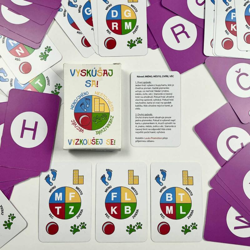 Vraťte se do dětských let a objevte tuto legendární slovní hru v novém, ještě zábavnějším kartovém zpracování. Kartová hra Jméno, město, zvíře, věc spojuje generace – rodiče si zavzpomínají a děti se hravou formou učí nová slova. Úkolem hráčů je co nejrychleji vymyslet správné slovo do zadané kategorie podle pokynů na kartě. Rychlost, pohotovost a dobrá slovní zásoba rozhodují o vítězi. Hra je dynamická, zábavná a nikdy není stejná.