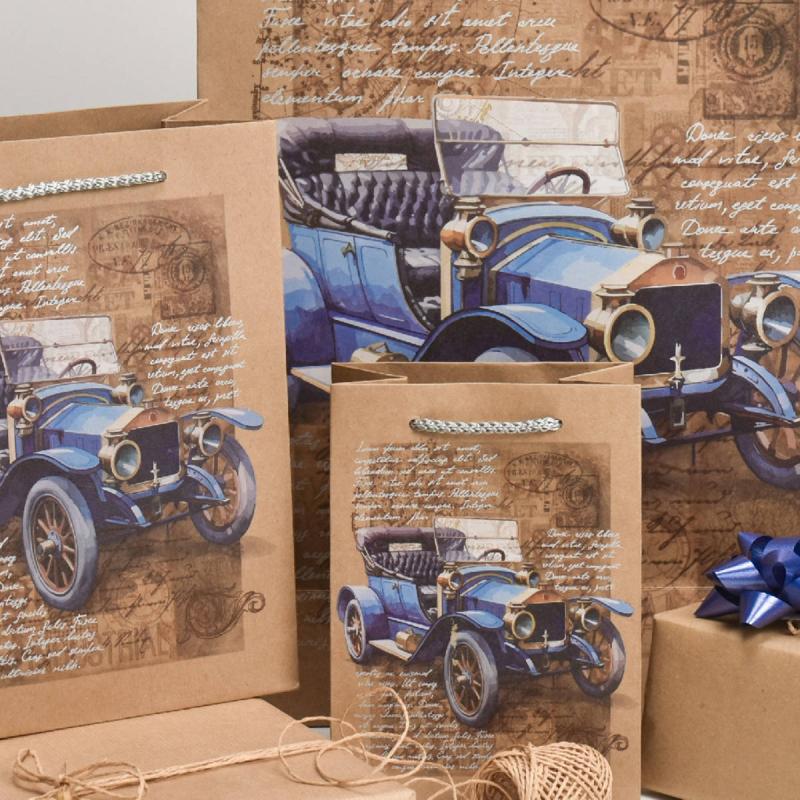 Dodanie produktu Argus Taška dárková veterán modrý 18x24x10cm papírová natur Eco Friendly
