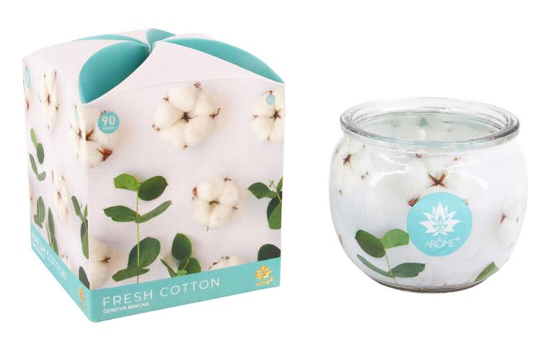 Arome Svíčka vonná sklo ČERSTVÁ BAVLNA 90g (hoří 22hod)