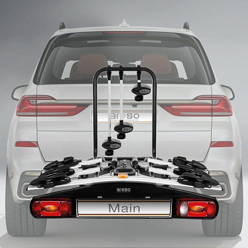 Moderní, praktický, skvěle dílensky zpracovaný a velmi snadno ovladatelný nosič na 3 kola nebo elektrokola na tažné zařízení Aroso Main 3 Aluminium ve stříbrné barvě přírodního hliníku od renomované německé značky Aroso s tradicí výroby autodoplňků již od roku 1973.Velmi praktická sklopná funkce nožním pedálem pro přístup do zavazadlového prostoru automobilu. Nosič je plně uzamykatelný pomocí odolných zámků, všechna jízdní kola jsou zabezpečená individuálními zámky. Možnost použití na klasická jízdní kola, silniční kola, horská kola MTB nebo 2 robustní elektrokola. Pokud mají elektrokola po sejmutí baterie hmotnost do 20kg, lze přepravovat až 3 elektrokola. Nosič lze rozšířit o adaptér na převoz čtvrtého kola (není součástí dodávky).