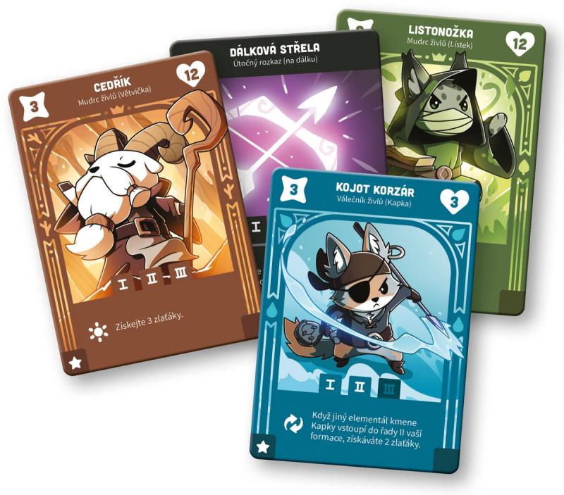 Podmaňte si magii pralesa a utkejte se se soupeřícími mudrci ve hře od tvůrců Chlupatých zabijáků a Čarostínů, zaměřené na budovaní baličku karet. Povolávejte válečníky živlů z kmenů Větvičky, Lístku, Kapky a Oblázku a prokažte svou zručnost v boji. Během bitvy budete postupovat na vyšší úrovně a získávat přistup k výjimečným schopnostem a mocným šampionům živlů. Budete to vy, kdo zůstane poslední stát pevně na nohou coby vítěz, až se usadí prach z bitvy?