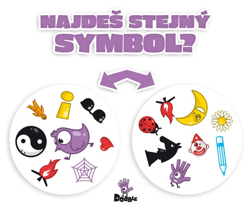 Rychlost, postřeh, reflexy! Buďte první, kdo najde shodný symbol na dvou kartách! Hra nabízí zcela unikátní zábavu. Hráči zde hledají dva stejné symboly na kartách při různých verzích hry (v pravidlech je popsáno celkem 5 her). Super jsou kulaté karty i jednoduchá pravidla, vysvětlená doslova za pár sekund. Plechová krabička zaručuje bezpečí karet a jednoduše umožňuje mít hru vždy u sebe. Vyzkoušejte i vy postřehový fenomén Dobble a jistě budete překvapeni, jak i tak jednoduchá hra může být zábavná!