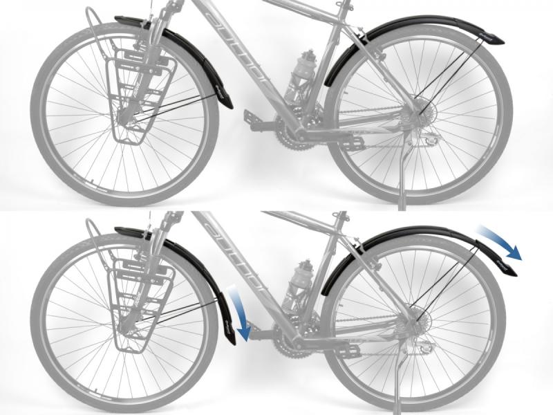 - Délka zadního blatníku je nastavitelná od 790 do 910 mm, čímž se zajistí optimální krytí zadní části kola.