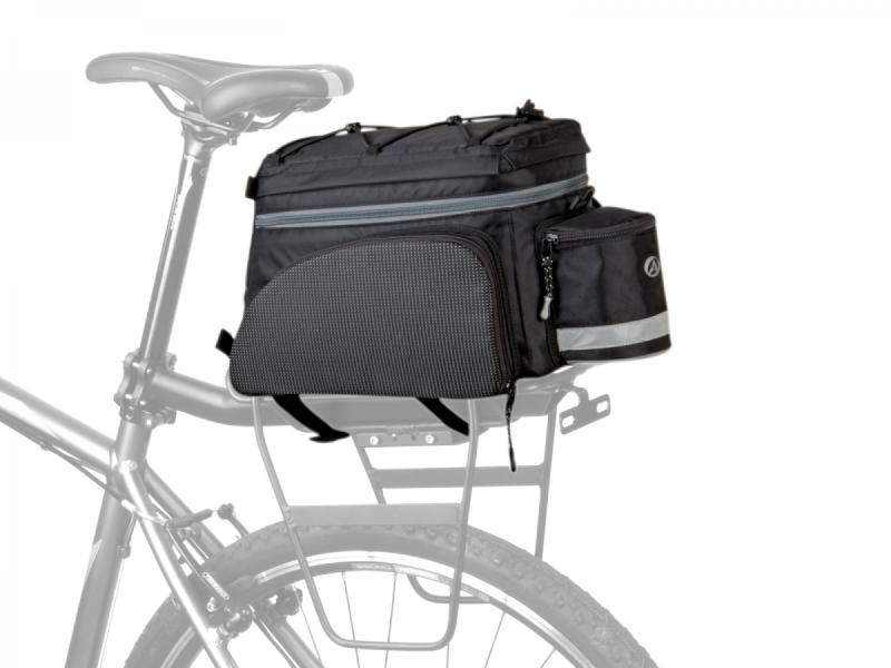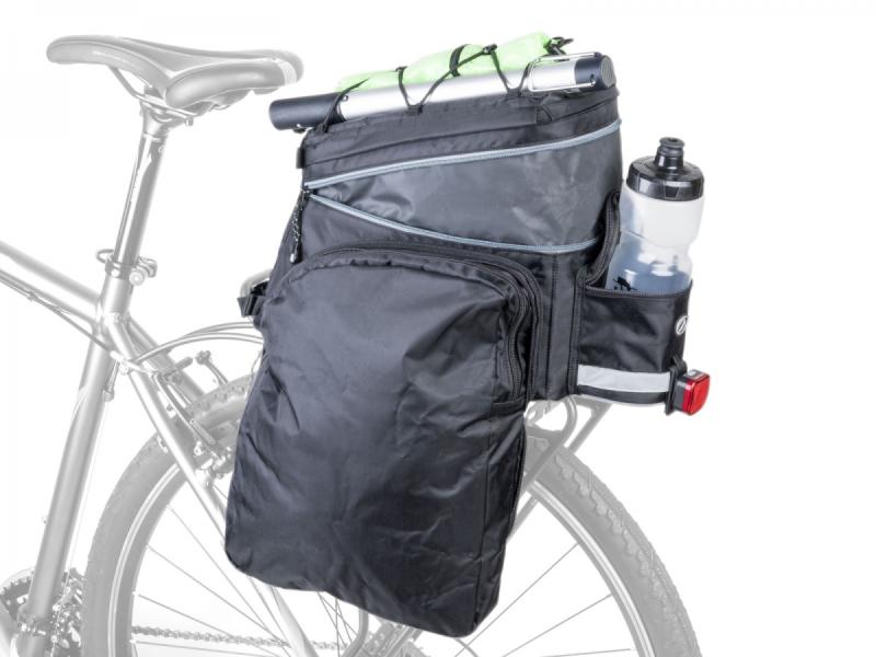 Brašna s nastavitelným objemem 15–20 l, voděodolným povlakem a reflexními doplňky, vhodná pro různé nosiče s praktickým ramenním popruhem.Tato brašna nabízí praktické řešení pro přepravu věcí na kole díky pevné konstrukci s polstrovanými stěnami a dnem, která spolehlivě ochrání obsah před nárazy. Hlavní kapsu a dvě postranní kapsy lze snadno přizpůsobit podle potřeby, což umožňuje efektivní využití prostoru s objemem od 15 do 20 litrů.