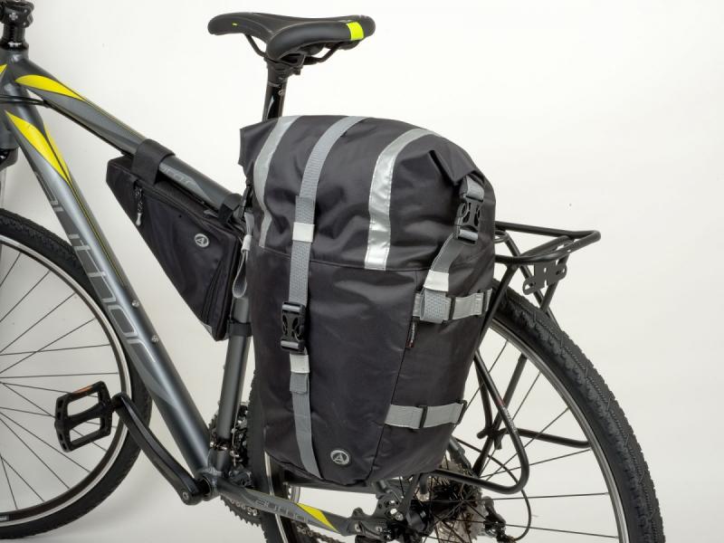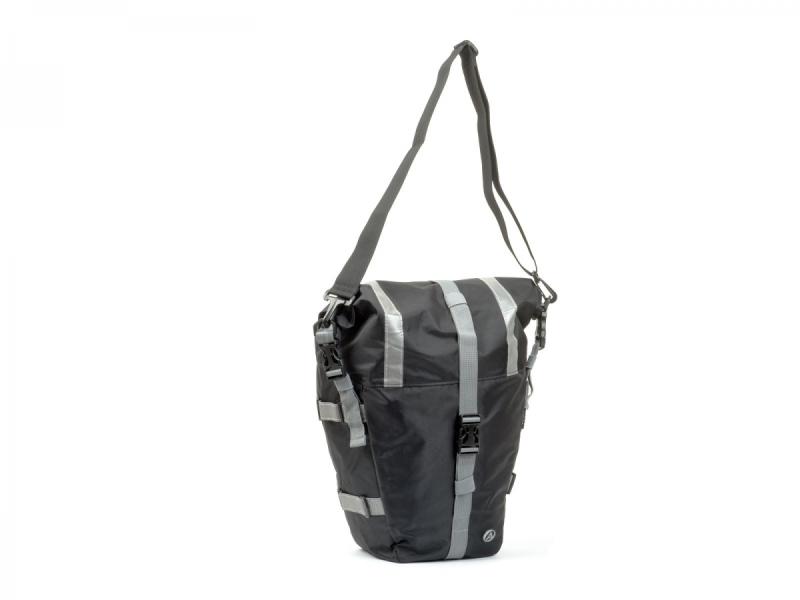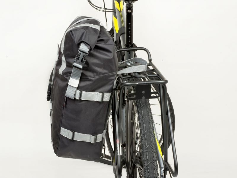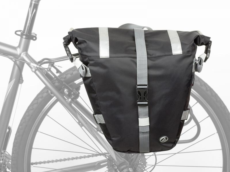 Postranní brašna s objemem 12 až 19 litrů, voděodolná a s reflexními prvky pro bezpečnou jízdu za snížené viditelnosti.Tato postranní brašna nabízí praktické řešení pro přepravu věcí na kole díky možnosti uchycení na levou i pravou stranu nosiče. Díky tvarovaným rohům nehrozí nepříjemné kopání do brašny při šlapání, což zvyšuje komfort jízdy.