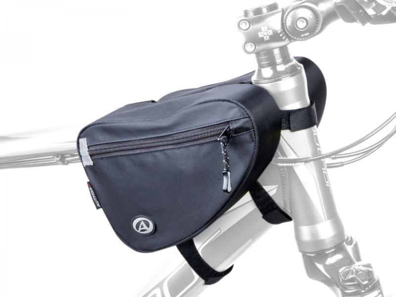 Brašna do rámu je navržena tak, aby poskytovala praktické a spolehlivé řešení pro uložení drobných předmětů během jízdy na kole. Disponuje dvěma hlavními kapsami, každou umístěnou na jedné straně rámu, což umožňuje rovnoměrné rozložení nákladu a snadný přístup k uloženým věcem. Uchycení k rámu je řešeno pomocí pevného suchého zipu, který umožňuje jednoduché a rychlé připevnění, přičemž je možné nastavit mezeru mezi brašnami podle průměru rámové trubky, čímž se zajistí stabilita a kompatibilita s různými typy rámů.