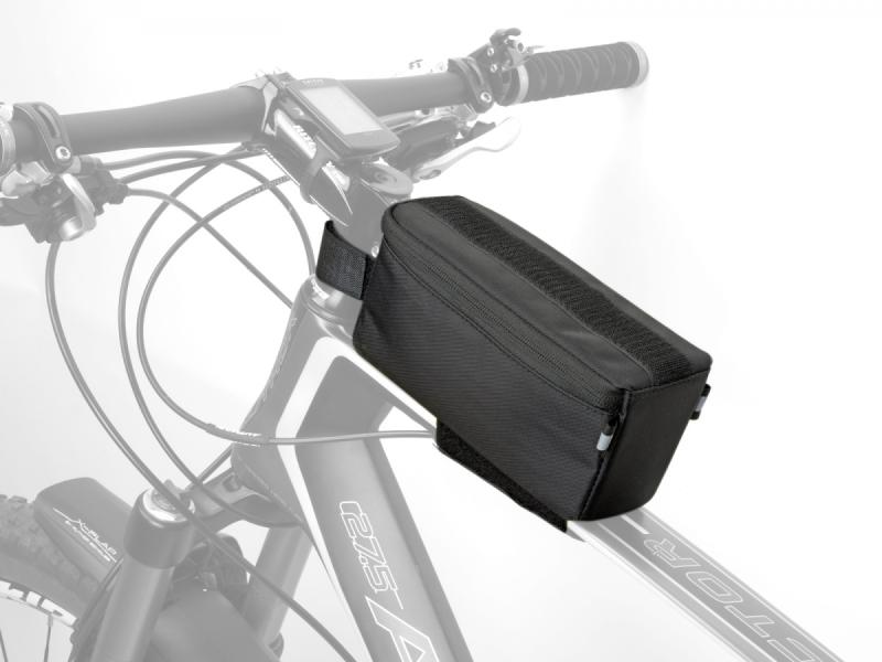 Snadné a pevné uchycení na rám zajišťuje hlavní popruh na suchý zip s vnitřním silikonovým potiskem, který drží brašnu stabilně na místě i při náročnější jízdě. Všechny části jsou polstrované pro maximální ochranu přepravovaných věcí.