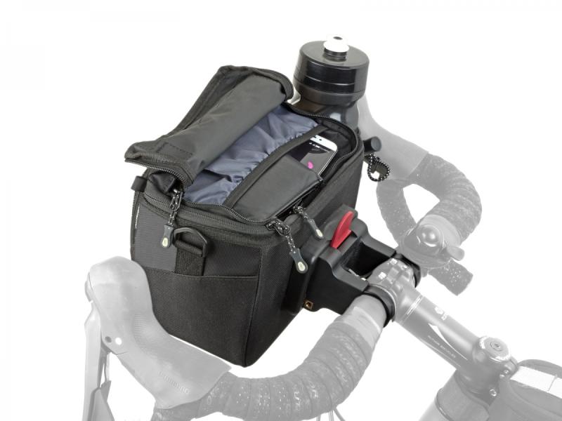 Konstrukce kombinuje pevný nylon 420 D s PU zátěrem, který je odolný vůči vodě a oděru, s panely vyztuženými EVA pěnou, což zajišťuje spolehlivou ochranu přepravovaných předmětů. Součástí je držák QRA™ s univerzálními objímkami pro průměry řídítek 25,4 a 31,8 mm, umožňující rychlé a jednoduché připevnění i odejmutí brašny.