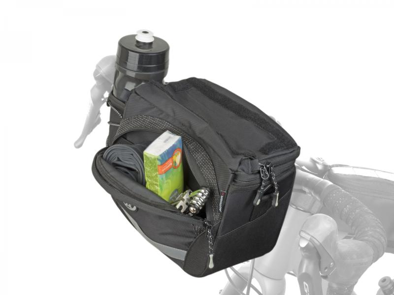 Praktická brašna s držákem QRA™ nabízí pouzdro na mapu, kapsy na drobnosti i láhev, reflexní prvky a pláštěnku pro bezpečné uložení věcí během jízdy.