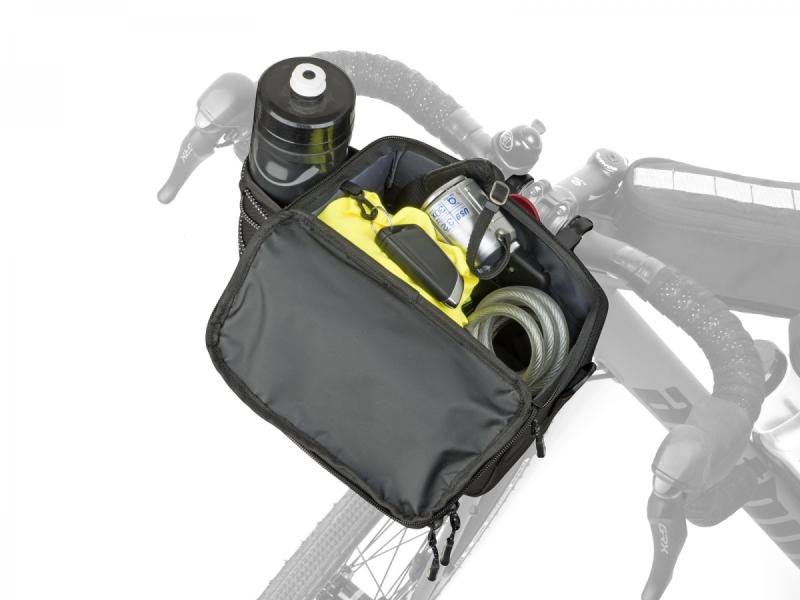 Tato brašna na řídítka je navržena tak, aby usnadnila organizaci a převoz nezbytností během cyklistických výletů a delších jízd.