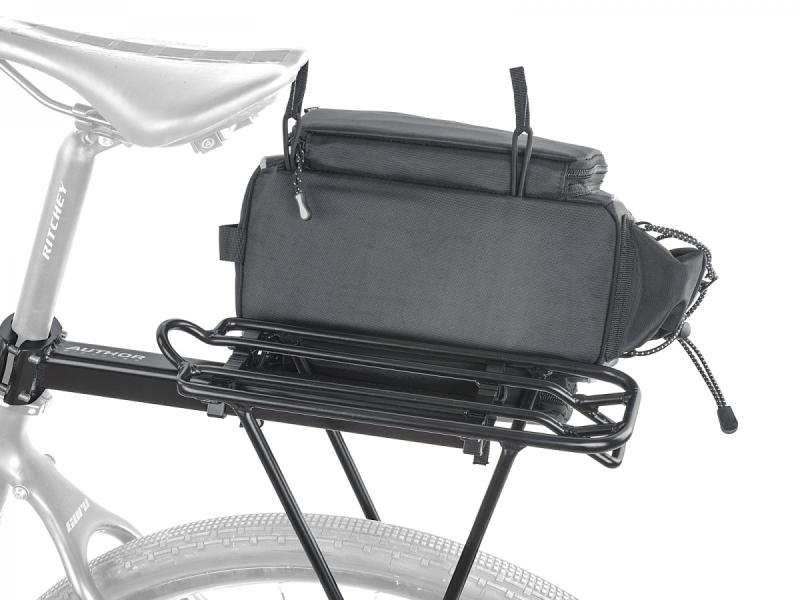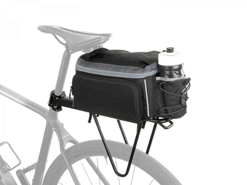 Taška s nosičom na sedlovku ponúka rýchle uchytenie, vodeodolnú ochranu a variabilný objem až 17 l pre pohodlné prenášanie vecí na bicykli.Taška s nosičom na sedlovku je navrhnutá tak, aby sa ľahko a rýchlo upevnila a stala sa pevným súčasťou bicykla. Vďaka prispôsobivému dizajnu môžete hlavnú kapsu aj bočné kapsy zväčšiť alebo zmenšiť podľa aktuálnej potreby, čo umožňuje pohodlné prispôsobenie objemu prepravovaných vecí.