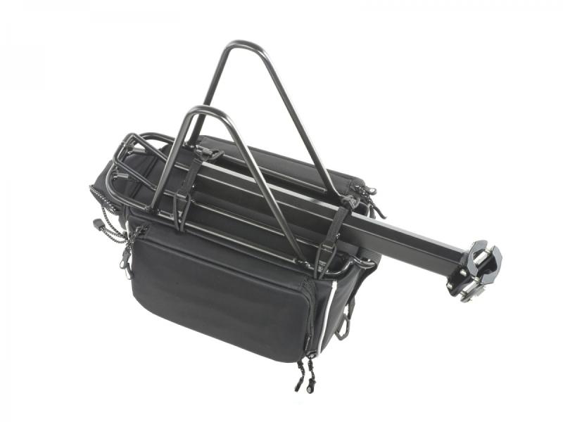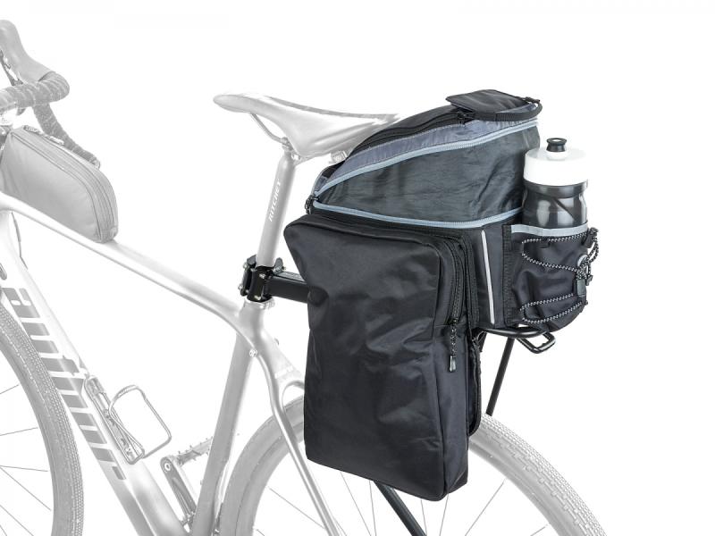 Taška s nosičom na sedlovku je navrhnutá tak, aby sa ľahko a rýchlo upevnila a stala sa pevným súčasťou bicykla. Vďaka prispôsobivému dizajnu môžete hlavnú kapsu aj bočné kapsy zväčšiť alebo zmenšiť podľa aktuálnej potreby, čo umožňuje pohodlné prispôsobenie objemu prepravovaných vecí.