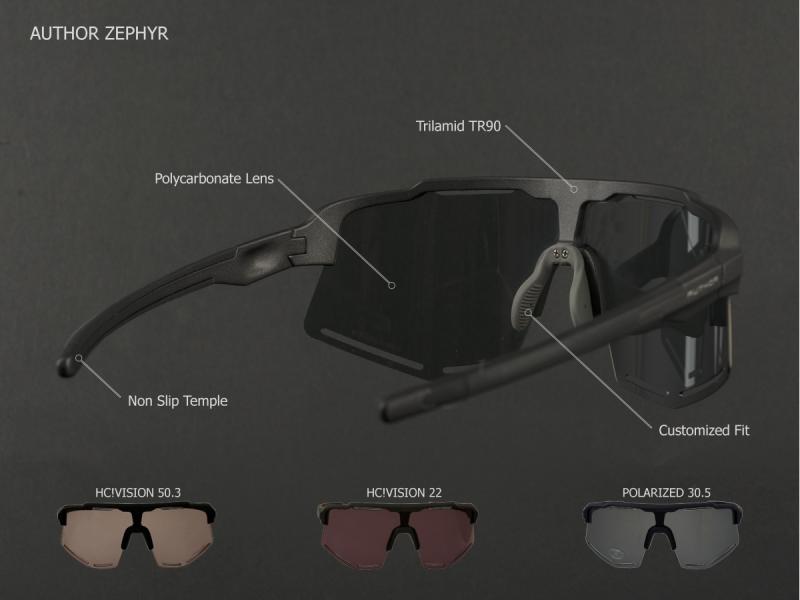 Model brýlí AUTHOR Zephyr HC!VISION 22 nabízí speciální tvar, který poskytuje účinnou ochranu očí před slunečním zářením i větrem. Díky použití flexibilního materiálu obrub TR90 a tvaru stranic s protiskluzovými A-slip koncovkami spolu se sedlem nosníku s A-slip úpravou brýle pevně a pohodlně drží na obličeji. Tento model je vhodný pro širokou škálu sportovních aktivit, včetně rychlostních disciplín, jako je silniční cyklistika, lyžování nebo běh.