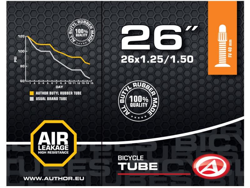 Duša AUTHOR 26x1.25-1.50 je vyrobená zo 100% butylovej gumy, ktorá zabezpečuje veľmi nízku priepustnosť plynov. Vďaka tomu udrží tlak vzduchu v pneumatike vášho bicykla dlhšiu dobu ako duše vyrobené zo syntetickej gumy, čo znamená menej časté dofukovanie a pohodlnejšiu jazdu.