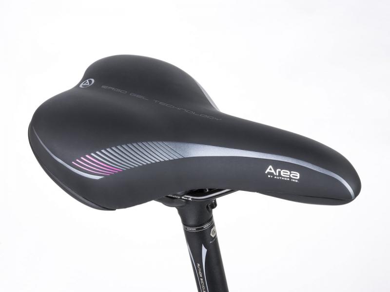 Radeniu zabezpečujú komponenty Shimano Alivio s 27 rýchlosťami, ktoré umožňujú plynulé a presné prehadzovanie, či už idete do kopca alebo po rovine. Pre pohodlný posed je bicykel vybavený dámskou ASL geometriou, ktorá lepšie zodpovedá anatómii ženskej postavy, a širším gélovým sedlom AUTHOR Area Gel, ktoré zmierňuje tlak a zvyšuje komfort pri dlhších jazdách.