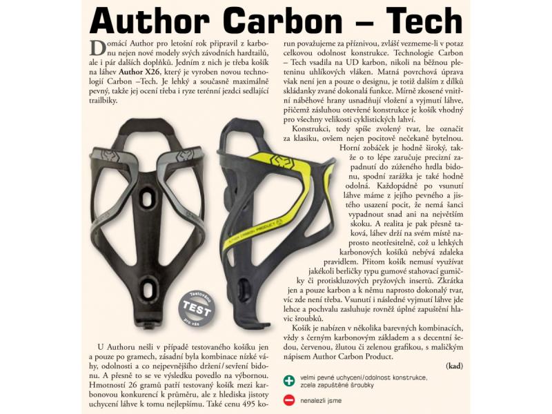 Košík na láhev AUTHOR X26 je vyroben pomocí moderní Carbon–Tech technologie, která zajišťuje jeho nízkou hmotnost a zároveň vysokou pevnost. Díky tvarovaným vnitřním hranám je vložení i vyjmutí láhve velmi snadné a pohodlné, což ocení každý cyklista během jízdy. Otevřená konstrukce košíku umožňuje použití s různými velikostmi cyklistických lahví, takže není potřeba řešit kompatibilitu.