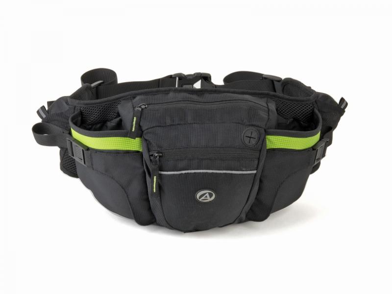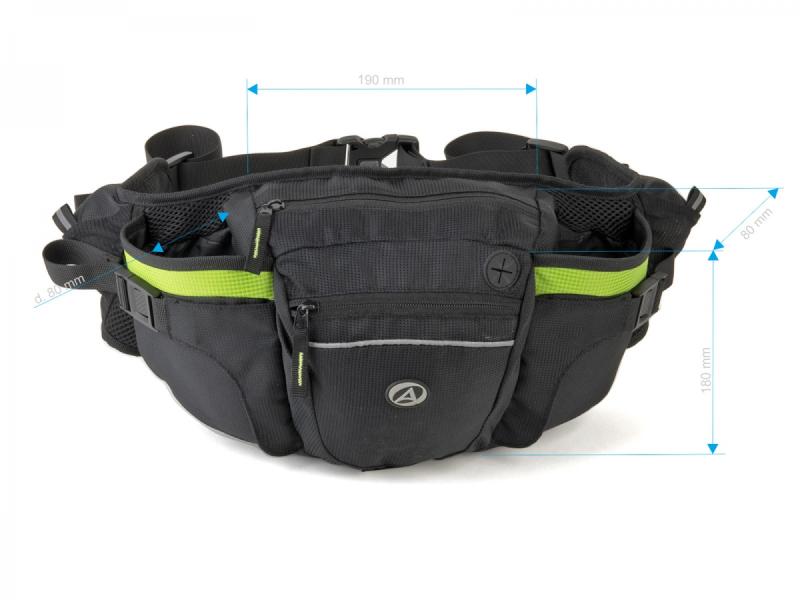 Praktická ledvinka s kompresními kapsami na dvě láhve a polstrovaným bederním pásem z prodyšné síťoviny pro pohodlné nošení i při pohybu. zobrazit celý popis