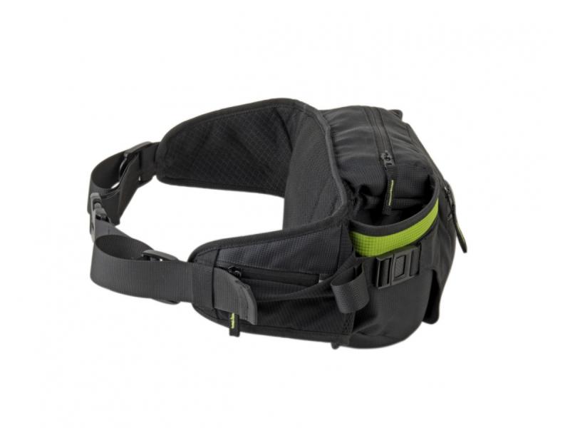 Bederní pás je navržen s důrazem na komfort, jeho vnitřní část je tvořena jemnou a prodyšnou síťovinou, která zajišťuje dostatečné odvětrání a zabraňuje nepříjemnému pocení. Pro uložení drobností jsou na bederním pásu dvě kapsy na zip, ideální pro klíče, malé občerstvení nebo kapesníky. Kompresní popruhy lze také použít k připevnění oblečení díky odepínacím přezkám.