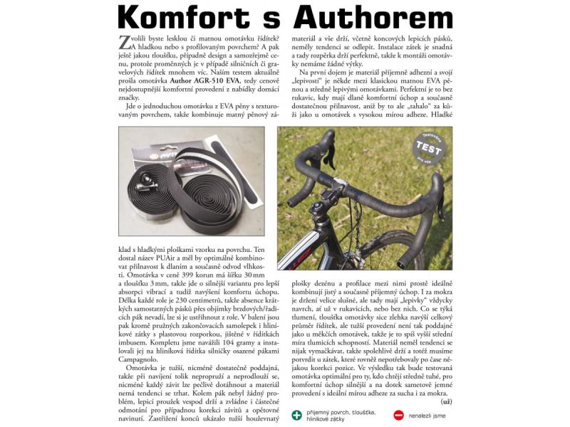 Pěnová omotávka AGR-E510 od značky Author představuje praktický doplněk pro silniční, gravelová i cyklokrosová kola. Díky ní budete mít při jízdě na rozbitých silnicích a v terénu pohodlnější úchop řídítek a zároveň částečně eliminujete nepříjemné vibrace. Speciálně navržená textura omotávky zaručuje výbornou přilnavost v různých povětrnostních podmínkách, což přispívá k bezpečnějšímu a jistějšímu držení řídítek. Materiál tvoří 3 mm silná EVA pěna s povrchem PUAir, který je elastický a umožňuje jednoduché a přesné omotání i v místě ohybů řídítek.