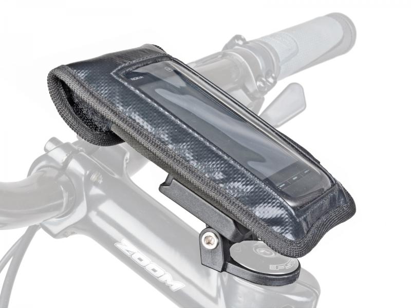Taška na predstavec je navrhnutá pre telefóny s dotykovým displejom a umožňuje ich bezpečné upevnenie pod krytku hlavového zloženia bicykla. Vďaka špeciálnemu vystuženiu je telefón dobre chránený pred nárazmi a otrasmi počas jazdy. Univerzálny držiak umožňuje veľmi jednoduché zloženie aj upevnenie puzdra, čo oceníte pri rýchlom prístupe k telefónu.