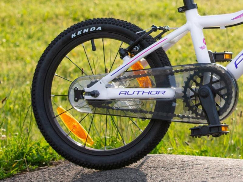 Geometrie a komponenty jsou pečlivě zvoleny tak, aby zajistily lehkou a stabilní jízdu, což pomáhá dětem získat důvěru při jízdě. Kryt řetězu chrání nohy i oblečení před znečištěním a možným zraněním. Vodicí madlo na sedle umožňuje rodičům bezpečně podržet dítě při prvních jízdách. Ergonomicky tvarované brzdové páky a řídítka jsou přizpůsobené dětským rukám, což zvyšuje kontrolu a pohodlí. Gripy s úzkým profilem a rozšířenými konci zajišťují pevný a bezpečný úchop. Pláště s výrazným vzorkem mají dobrou přilnavost na různých površích, což přispívá k jistotě jízdy. Výšku řídítek lze nastavit, takže kolo roste spolu s dítětem.