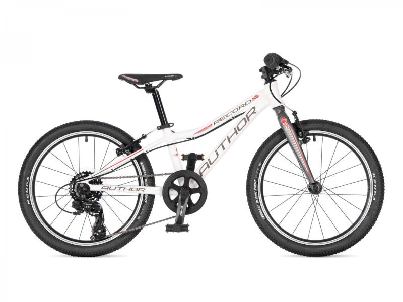 Author Record 20 2025 bílé/stříbrné/červené dětské kolo + výbava zdarma