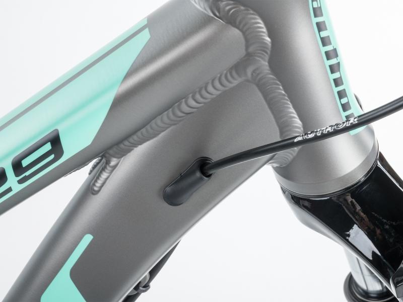Rám je vyroben z kvalitního duralu 6061 s dámskou geometrií, která zajišťuje pohodlí a lepší ovladatelnost. Integrované vnitřní vedení bovdenů chrání řazení před nečistotami a poškozením. Vidlice RST Blaze nabízí možnost mechanického zamykání, což pomáhá při jízdě na rovině nebo do kopce, kdy je vhodné odpružení zablokovat pro lepší přenos síly.