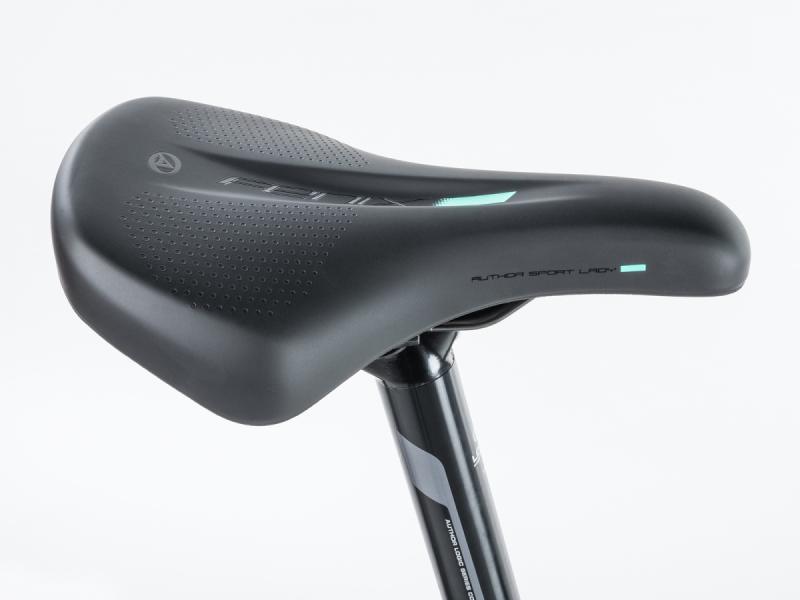 Další komponenty, jako jsou pohodlné dámské sedlo a měkké komfortní gripy, přispívají k příjemnému pocitu během jízdy. Rám má také odlehčené patky s přípravou na montáž integrovaného stojánku, stejně jako závitové otvory pro nosič a blatníky, což umožňuje snadné doplnění výbavy podle potřeby.