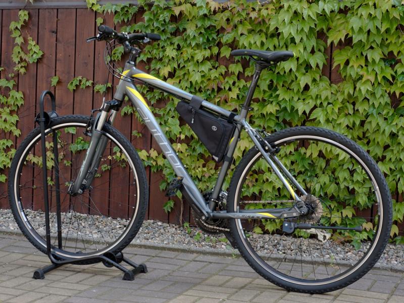 Univerzálny stojan na bicykel s jednoduchým uchytením za predné alebo zadné koleso, nastaviteľný pre bicykle 24 až 29 palcov a šírku plášťa 19 až 80 mm. Zobrazit celý popis