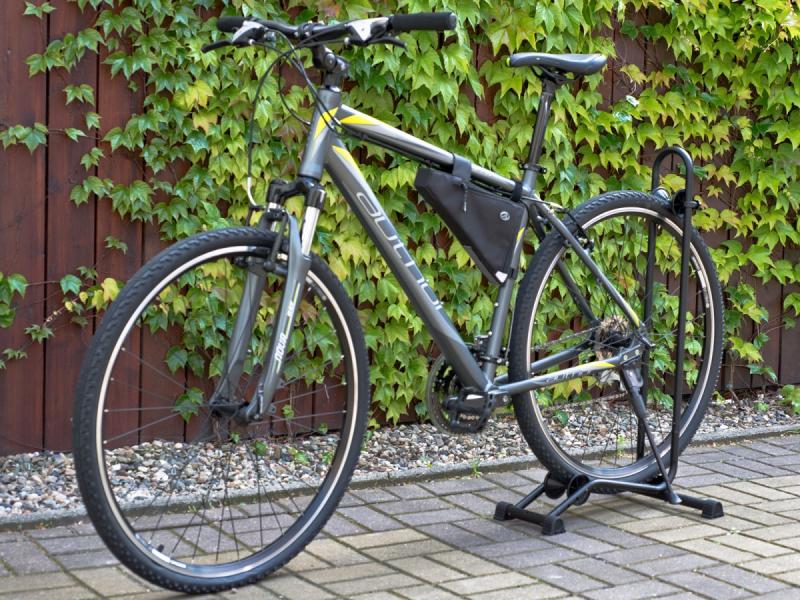 Uchytenie stojana je jednoduché, je možné ho pripevniť ako za predné, tak aj za zadné koleso, čo zaručuje flexibilitu pri použití s rôznymi typmi bicyklov.